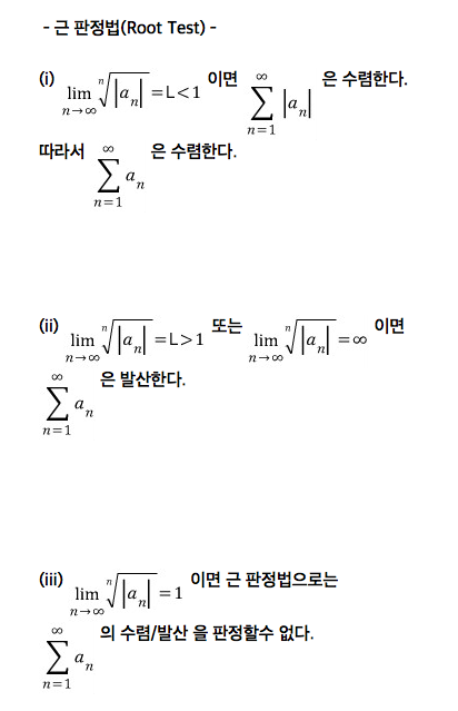 무한히 어떤 항들을 더해나가는 경우에 그 급수의 수렴성을 판단할 수 있다.