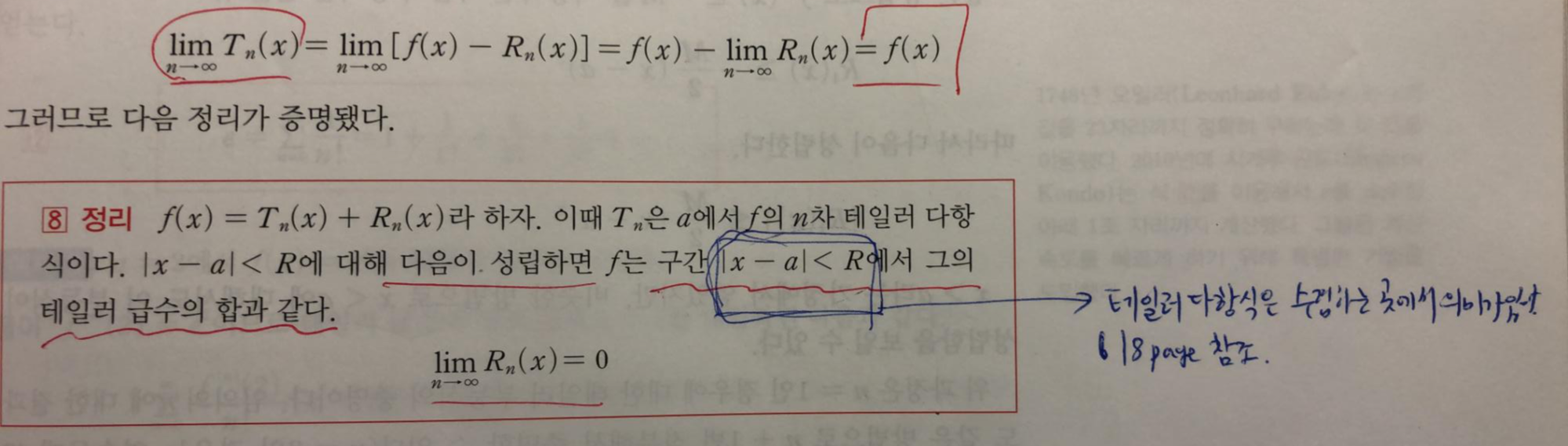 이 급수를 a에서 f의 테일러 급수라 한다. a=0인 특수한 경우의 테일러 급수는