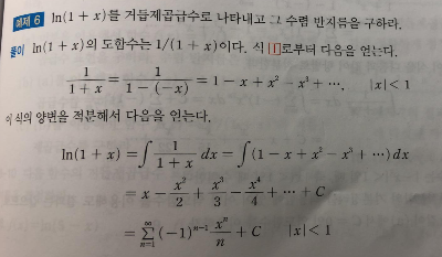 또 막 $\int_{n+1}^{\infty} \frac{1}{1+x^7}\, dx$ 같은 거 적분하기 힘들 때 거듭제곱급수의 합으로 표현한 후 각각의 항을 적분해주면 구하기 쉽겠지!?